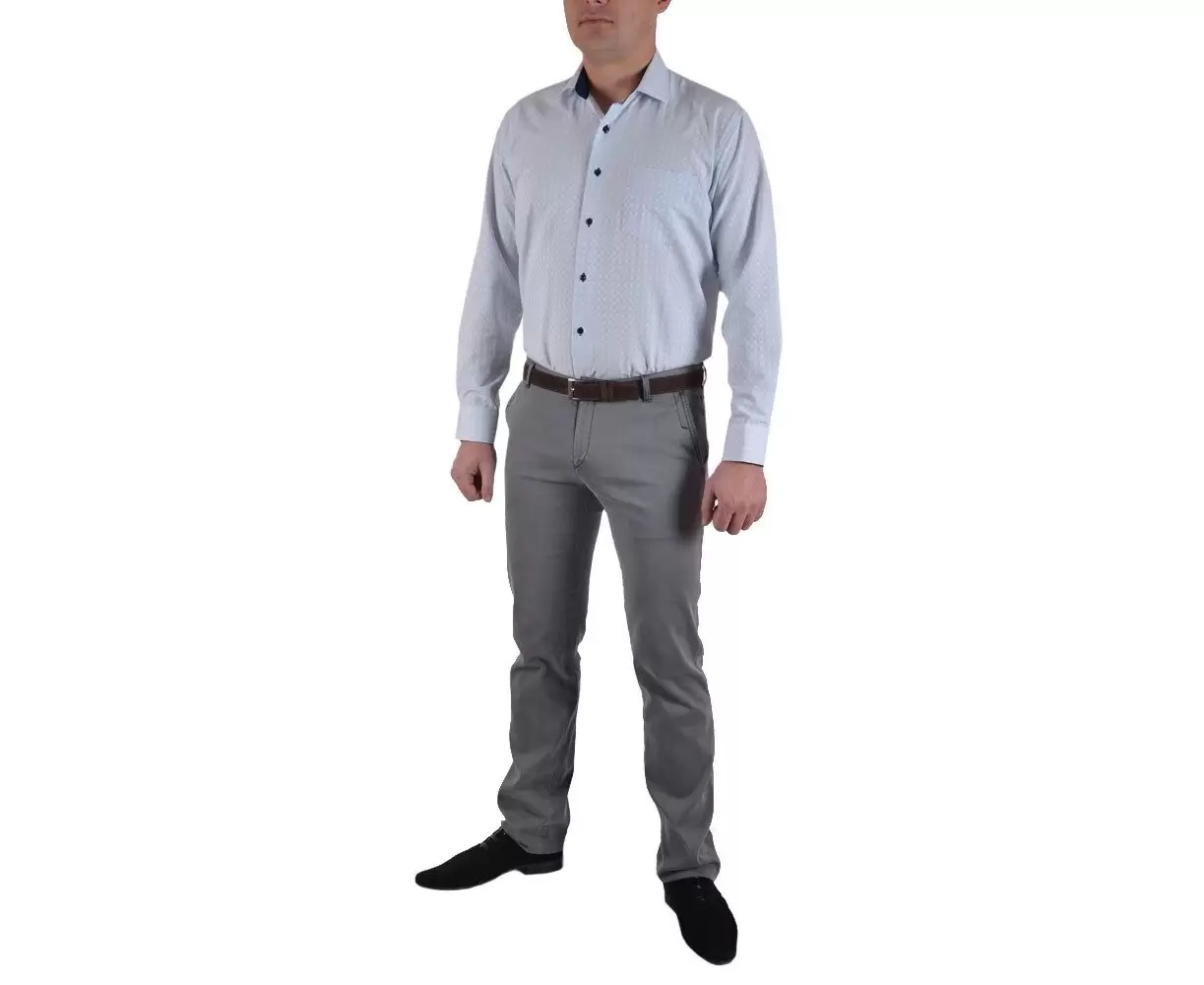 Сорочка блакитного кольору з текстурою в клітину VELS 6452-1 пошита в м.Стамбул (Туреччина). У своєму складі вона має 90% котону і 10% віскози, тому при носінні Ви будете відчувати себе комфортно. Також вона проста в догляді.