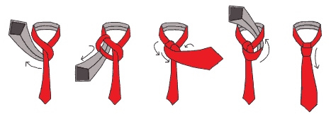 2. Универсальный узел. Самый популярный способ завязать галстук. Подходит для шелковых галстуков традиционной ширины, широких плотных и входящих в моду узких галстуков.
